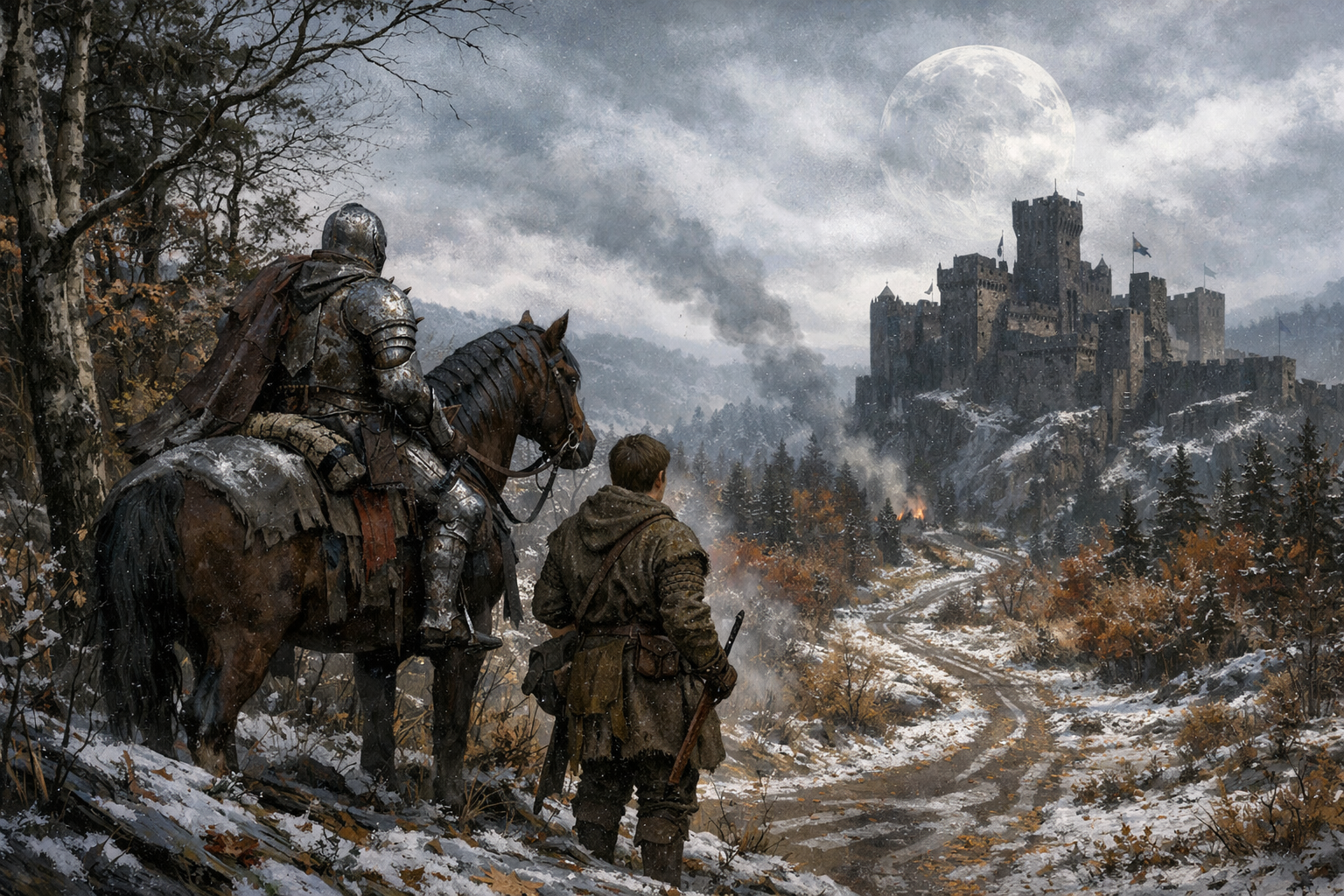 Поздняя осень переходит в зиму. Сегодня выпал первый снег - не пушистый и легкий, а мокрый, тяжелый, забивающийся в щели доспехов и обещающий долгую, голодную зиму.