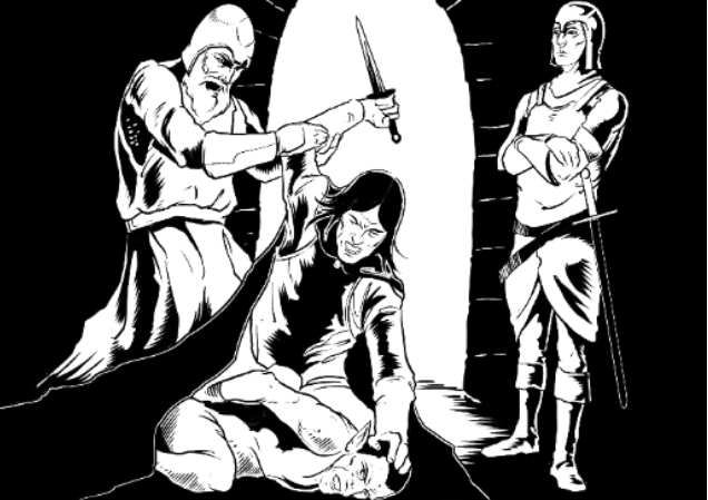 Если усыпит двух здоровяков, то это уже будет большим плюсом. Одна из жриц возьмёт на себя гоблина, чтобы их не разбудил, а Эйнар с оставшейся жрицей займётся вожаком. Или скорее это он займётся нами.