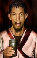 Русые волосы до плеч, средний рост и телосложение, пальцы вечно находятся в остатках каких-то порошков или чернил. Глаза коричневые с зелёным отливом. Взгляд добродушный но очень пристальный, из-за чего очень тяжело долго смотреть ему в глаза. Под далеко не новыми кожаными доспехами виднеется потертая одежда с гномьим орнаментом.