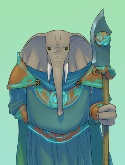Сур крупный даже по меркам представителей своей расы. Обладает длинным хоботом, небольшими, подростковыми, бивнями и большими, потрёпанными ушами. Чаще всего одет в потрепанную робу с медными вставками на груди, плечах и поясе. Медные части одежды довольно древние и местами покрыты патиной и царапинами, но Сур дорожит этим элементом своего наряда, ведь это память о его предках.