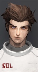 Дурно воспитанный сынок богатеньких и крайне влиятельных родителей, что по жизни привык к тому что все как-нибудь само-собой устраивается. Спец-программа обучения, дорогущий универ - на все ему было плевать, посему и вылетел он оттуда с треском. А и пофиг. Пристрастился к наркотикам, гонкам, где он вместе с друзьями летал по самым злачным местам планеты на взломанных и разогнанных просто до неприличия спейсбайках. Азарт гонок бушевал в его крови, перекрывая даже дорогущую наркоту, и скоро он стал одним из лучших пилотов, который ради адреналина каждый раз выискивал себе все более сложные трассы, нарушая все законы и запреты. Родители долго терпели это безобразие, но когда он умудрился в наглую угнать у военных истребитель и, уходя от орбитального обстрела, разнес к чертям несколько крупных островов, не выдержали и они. Нет, сдавать его властям они всё же не стали, ровно, как и покрывать. Запихали в чемодан, заморозили и выслали почтой в другую систему всего с парой тысяч кредитов на счете. Все мол, пусть теперь сынок сам выкручивается как знает... Очнулся Ален только лет тридцать спустя. Удобная вообще штука этот анабиоз: только активировал, моргнул глазами - и вот ты уже дрожишь от холода в тесном кожаном чемодане. Жаль только встречается она только в военных скафандрах, ну так он как раз один такой вместе с истребителем спер, хех. Решив не тревожить местных своими криками, парень самостоятельно вспорол свою посылочку и оказался в пыльном портовом складе. Сперев на память пару писем, Ален прямо так в скафандре и свалил в ближайший бар, что бы уже там понять в какой дикое захолустье его сослали предки. С горя уйдя в запой на месяц, парень как-то меж делом успел подраться, выиграть в карты старый потрепанный космобайк, подружиться с местными прохиндеями и потратить почти все свои деньги. Протрезвев от того, что банально не смог купить себе выпивки, Ален понял, что пора срочно что-то делать. Выпучив глаза парень пробежался по всем недавно приобретенным друзьям и разузнал, что одна загадочная организация очень хочет перехватить летящую из глубокого космоса неведумую фиговину. Хочет настолько, что готова не только вывалить за её находку изрядную сумму кредитов, но даже вложиться в организацию экспедиции, если, конечно, найдется такой дурак, что согласится за их счет гоняться на околосветовой скорости за неведомо чем... Дурак нашелся, экспедиция состоялась, вот только пара месяцев для увлекшегося погоней Сола из-за релятивистских эффектов вылилась в несколько незапланированных тысячелетий на планете. Впрочем, трофеи из перехваченного им заброшенного корабля неведомой расы, что продрейфовал аж из соседней галактики всё равно удалось неплохо пристроить, оставив себе на память небольшую ерундовину. Так как-то дальше и повелось. Безделье, пьянки, гонки... Внезапное безумное задание! Отлично оплачиваемое, ага! И на которое нормальные люди почему-то не соглашаются. Ну там, к черной дыре слетать. Проложить частные прыжковые врата для какой-то секты в далёкую систему, ради чего ему пришлось переться туда в нормальном пространстве. Испытать экспериментальный сверхсветовой двигатель... Да мало ли? Вот только едва ли не каждое задание шло как-то не так, утаскивая Сола всё дальше и дальше в будущее, не говоря уже о том, что несколько раз он вообще невед
