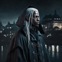 Рост: 166 см. Вес: 61 кг. Возраст: 21 год. Цвет глаз: блекло-серый. Цвет волос: пепельный (зелёный оттенок от краски). Лёгкий наряд храмового служителя на неплохо сложенном невысоком теле. Ухоженные волосы образуют причудливую прическу, где самые длинные локоны спадают по бокам лица до уровня плеч.