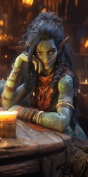 Юная эльфийка не полных 19 годиков, необычного для эльфа цвета кожи и глаз, полученного с приобретением стихийной приверженности после одного из заданий. По славам более опытных магов, столь сильное влияние связанно с малым возрастом магички и силой в нем приобретенной, говорят с возрастом и возвышением в силе внешность вернется к более классическому виду.