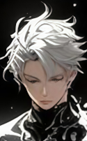 Носит светло-серые одежды, напоминающие одновременно плащ и пиджак с длинными и широкими рукавами. Наверное, это стоило называть "мантией", но выглядит оно как ответвление от поздней средневековой моды, не получившее своё развитие и пропавшее в веках. На руках у мужчины чёрные тонкие перчатки, оставлявшие большинство пальцев свободными, чем-то напоминавшие перчатки да Винчи. А обут он в высокие и плотные сапоги, вызывающие ассоциации с утончённым военным стилем.