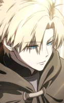 Блондин среднего возраста с грубой простой причёской и в простом длинном плаще, напоминающем походный рыцарский. Глаза - холодно-голубые, мимика - отрешённая.