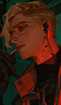 Джой во всей красе:Глаза на затылке (зрительный имплант):Биомеханическая аугментация ЦНС:Инженерный костюм (Киллджой):В любом другом мире, Джой был бы статным и плечистым юношей, будто сошедшим с рекрутерских постеров для солдат коалиции: волосы цвета натурального блонда, некогда голубые глаза и сильный взгляд, правильное лицо, может быть не традиционно-красивое, но по своему харизматичное, сильные развитые мышцы и отсутствие как явных мутаций, так и следов терменальных генов. В общем, чистокровный человек. Без излишних аугментаций. Без следов деградации. Без следов скульптинга на теле. В любом другом мире... но не в этом. В этом он – долговязый юноша, с запутывающиися пшеничныи волосамми, котоыре ему постоянно приходиться мыть бактой, стричь и зачёсывать, потому те падают на лицо и мешают в самые отествтенные времена работы. Его тело – худое от недоедания и потеряло всякий природный атлетизм, что был присух ему к рождению. Из-за недоедания, щёки на его лице впали и то стало хищным и ещё более выразительным, как у зверька, что готов блевать жизнью от голода. Под бледной кожей растягиваются корешки и узлы биомеханических аугментаций, пульсирующими фиолетовыми венами и сложными узорами проступая на коже. Они сплетаются в толстый узел у него на спине, выступая над позвоночнимком защитным каркасом из наслаивающихся друг на друга полосок неизвестного металла, что тянутся у него от самого копчика и до затылка, который у основания черепушки заменён на сложный коннектор порта и едва заметные дополнительные глаза-аугменты на затылке. Его родные глаза сменили цвет на фиолетовый из-за мутации, которая произошла с мутацией зрительных нервов: они стали фиолетовыми, со странным, крестообразным зрачком, который сужается и расширяется как сложная диофрагма фотоаппарата. Они едва заметно светятся и зрение парня ухудшилось, из-за чего ему приходится носить очки... чтобы в обмен подарить ему возможность видеть в темноте и источники сетевого сигнала, которые ему чисто в теории нахер не нужны, но кто он такой, чтобы говорить против?! Всё это нужно ради его выживание. И даже выпирающие из спины короткие и широкие шипы-коннекторы, из-за которых кажется, что у него есть горб, и многочисленные изменения тела... только благодаря ним и костюму с батареями, что он носит, Джой ещё жив. Над груди он носит своё второе сердце – портативный самодельный реактор, который заряжает энергией его сложный протез и не даёт ему начать жрать собственное тело на ресурсы. Вес: 55 кг Рост: 185 см Возраст: 18+ лет Цвет глаз: блекло-фиолетовый Цвет волос: натуральный блондин Особенности: биомеханические импланты тянущиеся по спине к голове, сенсорные импланты в затылке, необычное свечение глаз, татуировки с цифрами на руке, волосы постоянно мешают