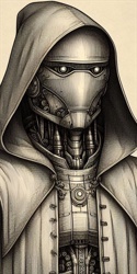 Размер: Средний (M) Скорость: 30' (6 ☐)Пыльно-серая роба из грубой сермяги, вечно мятая, с то тут, то там встречающимися прорехами и неровными расплетёнными краями, а также просторным капюшоном и широкими рукавами, отдалённо напоминала бы монашескую, но даже самые аскетические из служителей Господних вряд ли допустили бы, чтобы их одеяния, несмотря на свою мирскую и оттого бренную природу, напоминали бы кучу тряпья. На первый взгляд обитатель этой робы может показаться обычным человеком, особенно в тёмных катакомбах Дыр, но это было бы ошибкой, пусть и совершенно понятной, поскольку в отличие от обычного применения одежды, это тряпьё не скрывает под собой живой плоти. В сочетании с простыми перчатками, обозначающими кисти и пальцы рук, а также оформляющими ступни и ноги грязными онучами, это могло бы привести ко второй, тоже вполне резонной, но тоже неверной гипотезе о том, что перед наблюдателем находится один из обладающих столь «ласковым» названием хламоидов, однако заинтересуйся кто-то вглядеться в необычно глубокие тени, скрывающие предполагаемое лицо, пусть даже и состоявшее бы из перемешанных и скомканных тканей, поближе, они быстро бы заметили, что вместо него там лишь зияющая пустота, присущая так называемым «менянетам». Тем не менее, на поверхности сукна и через дыры в нём нет-нет, да заметно движение. Да, те Дыры, что пишутся с заглавной «Д», не славятся своей чистотой и ухоженностью, а потому даже их узники почти поголовно так или иначе носят на себе всевозможных непрошенных гостей, не говоря уж про её сырые и тёмные застенки, но в этих пустых робах местная живность нашла себе готовый приют, благо их бесплотный владелец, кажется, не имеет на то никаких возражений.