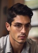 Непримечательный худощавый и невысокий молодой мужчина в очках. Одевается просто - джинсы, футболка или рубашка, кроссовки. Коротко стрижен, небрежно выбрит, темные волосы, светлая кожа.