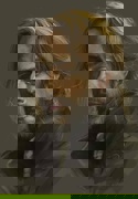 Высокая, крепкая, поджарая, жилистая, загорелая, узколицая. Волосы пышные, рыжие, убраны в короткий хвостик, торчащий из-под причудливой шляпы с лисьим хвостом. Жесткий взгляд, который временами совершенно непредсказуемо теплеет. Зеленые глаза. Покрытое веснушками неулыбчивое лицо. Мешковатая одежда, кожаный "доспех" ловчего, скрытые грубыми перчатками тонкие пальцы, колчан на бедре, лук за спиной.