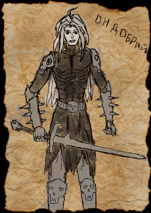 Отказ от самобытности равносилен смерти Эксцентричный хаотичный да башкой немного тронутый. Ему нравиться выглядеть круто, как по внешности так и по действиям в бою, вот только его понимание крутости в нынешние времена и за пределами его родных земель, кажеться чем-то жутким темным и злым, но ему на это побоку. Даже если в его владении окажеться артифакт могучий, доспех какой или оружие, но не импонирующий по виду внешнему, то он предпочтет то что хоть и слабее но выглядит круче.