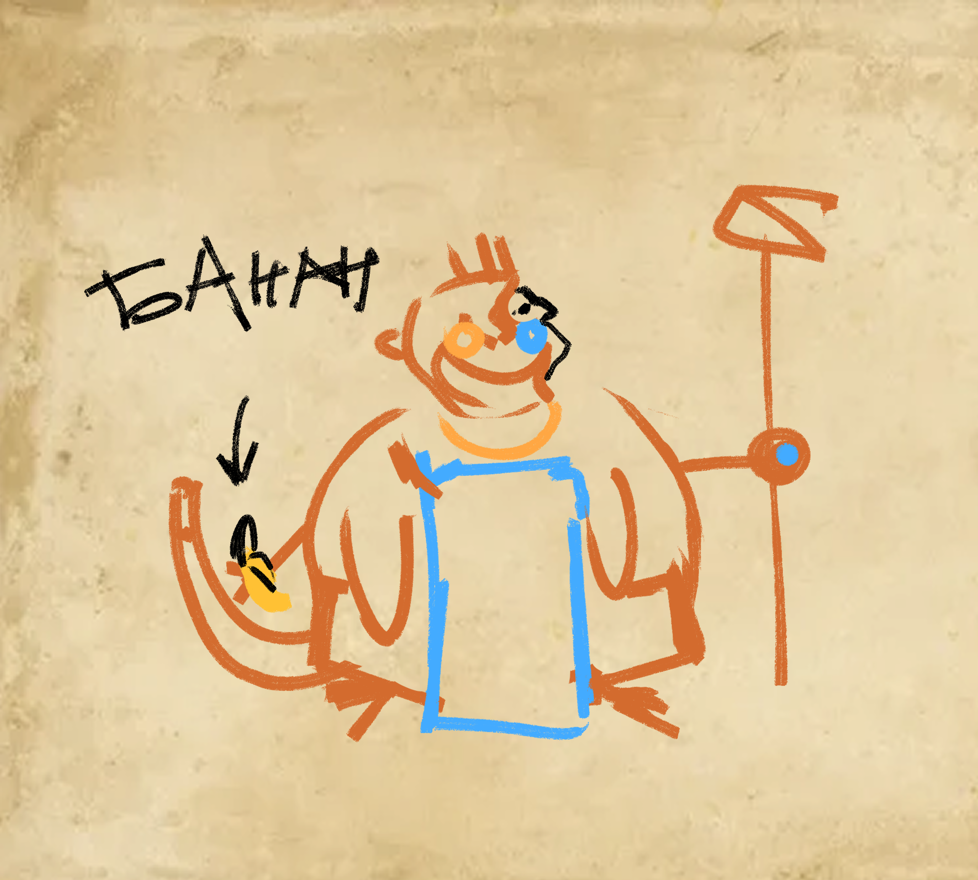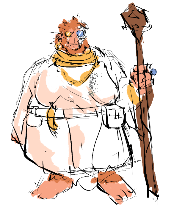 Достаточно низкая и толстая старушка обезьяна в ярких одеждах, которая постоянно ходит со своим посохом — то ли как с оружием, то ли уже как с костылём. Изначально выглядила, как обыкновенная обезьяна с рыжеватой шерстью, но теперь в ее внешности ярко выделятся куском торчащего черепа с левой стороны головы. На ней много увесистых, крупных украшений [мы не уверены, что это настоящее золото], небольшие очки с цветными стёклами разного цвета. Такую особу очень легко найти в толпе. Основной наряд — это белые одежды с голубыми вставками. На её левой лапе красуется кольцо с огромным голубым камнем — семейная реликвия, доставшаяся ей от её матери [мы не уверены, что это бижутерия, обладающая хоть какой-то материальной ценностью]Картинки[мне лень делать нормальный референс]: