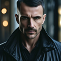 Белый мужчина на вид 40 лет, спортивное телосложение, карие глаза, чёрные волосы. Одет в деловом стиле в чёрной цвете - ботинки, брюки, пиджак и белая шёлковая рубака. Сверху дорогое, но уже серьёзно поношенное чёрное пальто. Эмоции практически никогда не проявляются на лице, оно почти всегда сохраняет нейтрально-безмятежное выражение.
