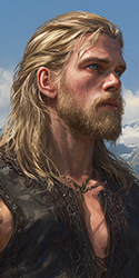◈ Возраст: 32 года ◈ Рост: 178 см ◈ Вес: 84 кг По внешнему виду Хельгарда сразу можно понять, что перед тобой стоит воин. Его фигура внушает уважение: широкоплечий, крепкий, но не перегруженный излишней грубостью, он выглядит как человек, закалённый в боях и походах. Его лицо обрамлено длинными, светло-русыми волосами, собранными в крепкий боевой хвост, с прядями, спадающими на плечи. Борода и усы ухоженные, подчёркивают мужественность и силу подбородка. На коже виднеются свежие и зажившие шрамы — немые свидетели сражений, через которые он прошёл. Особенно выделяются глаза — ярко-синие, холодные, словно лёд северных морей. Их пронзительный взгляд отражает стойкость и волю, но в то же время скрывает глубину мыслей и воспоминаний. Чаще всего одет в кожаный доспех, украшенный металлическими заклёпками и узорами, что говорит о мастерстве ремесленников его племени. На поясе топор — простой, но надёжный, созданный для реальной битвы, а не для показного величия. Руки его крепки и жилисты, покрыты следами множества битв, но каждое движение исполнено точности и уверенности. В его облике есть всё: гордость северного воина и суровая красота человека, чья жизнь посвящена силе, чести и верности своему народу.