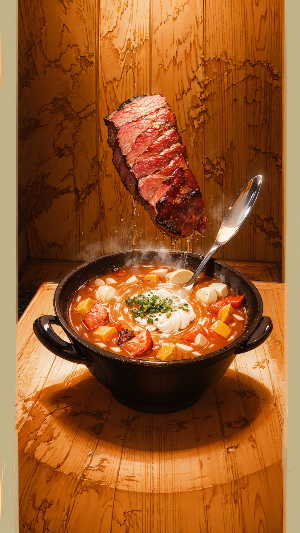 Перец Огня, Каменный имбирь, Небесный Лук, Прыгучие Грибы, в качестве стабилизатора Водный Картофель. А также мясо какого-нибудь зверя, но лучше всего из тех что образовали духовное ядро, (но не сильно агрессивной стихии чтобы не страдать из-за дисбаланса ци), всё почистить и нарезать, мясо закинуть в котёл и отваривать до получения бульона, затем добавить Перец и позволить немного выкипеть чтобы ушли шлаки, после чего стабилизировать Картофелем и как тот сготовится, заложить тонко нарезанный Лук и мятый Имбирь. Доваривать до готовности. В итоге получается сытный суп, который благотворно влияет на ци и позволяет либо быстрее ту восстановить если та истощена, или же если нет и уже получилось подойти к "узкому месту" своей культивации, то совершить прорыв на новую ступень. Из нюансов о которых нужно обязательно помнить, так только то, что посудина может не выдержать бурления энергий и огромного жара печи необходимой для того чтобы всё приготовилось, так что, лучше всего взять горшкок из нормального духовного камня.