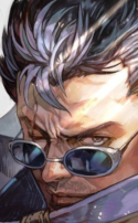 Высокий и крепкий на вид, - хоть и жилистый, а не "гора мышц", - мужчина, не молодой уже. Носит пыльную одежду странника и тёмные очки. Волосы почти прямые, - когда-то были чёрными, теперь просто тёмные, со следами седины, - небрежно лежат на голове в благородной естественности. Глаза серые, на лице пара шрамов и небритость путешественника. Умеет двигаться и ловко как кошка в трактире, и прямо через лес как волк, и кособоко как ходок на длинные дистанции из низшего сословия по разбитой дороге. Взгляд внимательный и бодрый, а лицо, если освободить его от высокого воротника и очков, выражает спокойную доброжелательность с еле-заметной улыбкой, формирующейся в уголках губ.