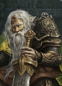 Седой, скрюченный дварф. Его руки дрожат, а глаза без очков неспособны рассмотреть ничего на расстоянии дальше собственной руки. Но в его голосе ещё слышны остатки былого могущества, тело ещё крепко, а разум способен удержать несколько вещей за раз.