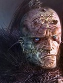 Широкий, практически квадратный мужчина с тяжёлым, хмурым взглядом, с вплавленой в плоть звёздой Хаоса, и цепочкой от уха до носа, которую носил задолго до постижения Восьмеричного Пути.