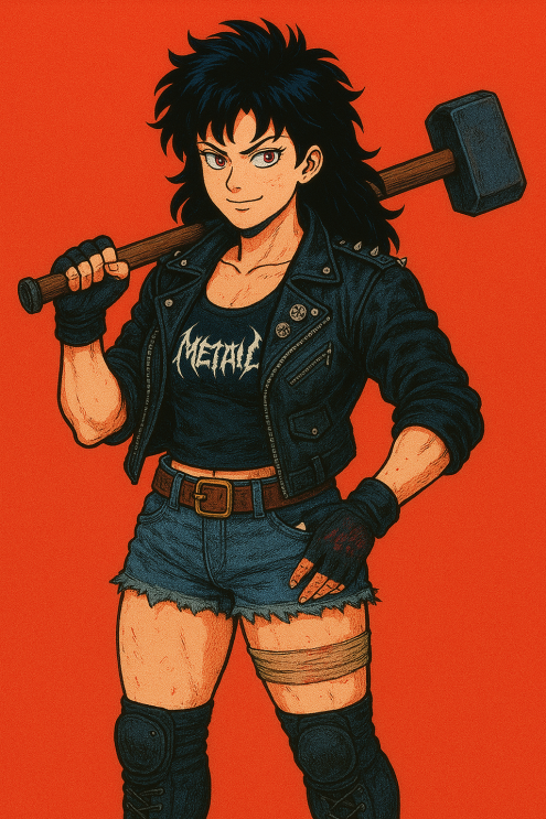 Где бы Машина ни оказалась, она гарантированно привлечёт всеобщее внимание. Двухметровая мускулистая великанша с пышной, лохматой копной чёрных волос никогда не затеряется в большой толпе, постоянно возвышаясь над чужими головами. Огромный рост и мощное телосложение дополняются ярким и броским стилем фанатки кальдеррийского пауэр-металла. Дерматиновая косуха скрипит при движениях и бряцает замками заклёпками в такт тяжёлым шагам Машины. Чёрный танк-топ с символикой местной металл-группы едва способен удержать внутри себя мощь её мускулатуры и объёмную грудь. Она носит джинсовые шорты на широком ремне, потому что обычные джинсы просто лопаются, стоит только Машине присесть. Спортивные наколенники и тяжёлые рифлёные ботинки не добавляют проворства, но зато отлично выручают в драке. Мощная, яркая, опасная, Террор-Машина полностью оправдывает свой сценический псевдоним.