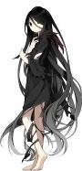 Высокая, тонкая девушка, с чуть раскосыми глазами, уголки глаз приподняты к вискам. Высокие скулы, длинные, тёмные волосы. Лицо по своему красивое, но немного мрачное. В одежде предпочитает темные цвета и свободный покрой. На шее носит тяжелую металлическую цепь. 171 см., 17 л. Звероформа - горлинка. Небольшая серенькая птичка.