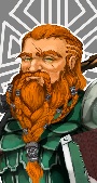 Довольно высокий рыжеволосый дварф, естественно, что по сравнению с большинством дварфов высокий. Впрочем, силой не уступающий ни одному долговязому человеку или кому-либо другому. Немного небрежен в одежде и волосах: одето, уложено, не мешает – вот и хорошо. Если вам доведется увидеть его предплечья, то увидите что они покрыты шрамами, имеющими определенную закономерность и выполнены явно специально и довольно точно. примерный узор рубцов на руках Символ на щите Шлем