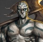 Гигант с серой кожей, рост 230 см, вес 140. Татуировками на торсе, руках и голове, создающие иллюзию, будто у него из кожи торчат камни скальных пород. Одет (едва прикрыт) шкурами, скрепленных на манер пальто без рукавов.