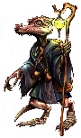 Маленький и юркий, с виду обычный кобольд. Рост чуть выше человеческой коленки , сложение по кобольдски худощавое, но весьма жилистое. Чешуя более грубая и заостреная по сравнению с другими кобольдами. Она синего цвета с песчаной окантовкой. Одет в плащь, который явно был сделан на человека, но тщательно замотан вокруг этого маленького тельца. За спиной у него самый обычный рюкзак человеческого размера, но старательно ушитый что бы не мешал.