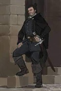 Статистика в бою: хиты: 30 из 30 удар рукой 1d6 удар ногой 1d6+4 копье 3d6 гамбез ПБ 8 Раса: человек эльфы: ненавидят, краснолюды: терпят +1 харзима, убеждение, соблазнение против людей +1 дедукция Упрямство: 3 раза за партию переброс сопротивления убеждению или страху Жизненный путь: Родина: Цинтра, +1 к пониманию людей Родители живы, обучался под опекой ученого мужа (+1 к образованию) Друг, оказавший влияние: церковь Состав семьи: отец, три сестры старше меня и сын младше меня. Я сбежал из семьи, так что мне, по большому счету, плевать. Но я чувствую вину, и отец ненавидит меня, хотя и надеется, что я вернусь. Неудача: я спился (зависимость от алкоголя, 1d10 против Воли) Союзник: рейтарствовал я как-то с компанией Рубайл из Цинтры. Разошлись пути-дороги, но мы были в хороших отношениях. Враг: жречество в Четыругле знает, что мне известно то, о чем лучше бы молчать. При случае они убьют меня, чтобы спрятать концы в воду.