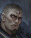 Мрачный мужчина на вид сорока лет, чей рост увеличивает тяжёлая силовая броня, носимая во всех вылазках. Верхняя часть горла и рта заменена на вокс-динамик, хрипящий слова гнева и ненависти. Глаза глубоко впали в обгоревших глазницах. Голова кажется немного больше, чем у людей обычно - следы обширных аугментаций, собравших и укрепивших заново весь череп.