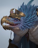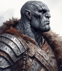 Отличия от арта - серая кожа, черные татуировки рун на щеках и шее, доспехи из перекрывающих наборных пластин, украшенные гравировками. На поясе висят ремесленные инструменты, плотницкие, кузнечные и ремонтные, а также два коротких топорика. За спиной плащ небесно-голубого цвета, с множеством чудных заплат на изнаночной стороне. Рост: 8 футов (243 см) Вес: 340 фунтов (154 кг)
