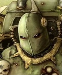 ТВ: 4 Броня Голова: 6 Корпус: 6 Левая рука: 6 Правая рука: 6 Ноги: 6 Поле: 30 (перегруз 1-10) Раны: 13/13 Стартовое снаряжение: меч отличного качества с монозаточкой, копьё хорошего качества, лук хорошего качества и тридцать стрел с монозаточкой, нож отличного качества с монозаточкой, доспех из звериного меха, 4 трофейных черепа. Купленное снаряжение: 1. Хороший тяжёлый панцирь. Хорошее: хорошо сделанную и отлично подогнанную броню легче носить. Представительный внешний вид помогает персонажу произвести впечатление, давая +5 к проверкам Социальных умений (по выбору игрока). Сияющий бронзовый доспех может предоставлять +5 к проверкам «Обаяния», или +5 к проверкам «Запугивания» при допросе схваченного чиновника за вырезанные на броне особенно пугающие символы 2. Инферно-пистолеты ‘Слёза Смерти’ 10 м. О/–/–, 2к10+10 Э, бб 12, маг 3, ПД, Мельта, Ядовитый выхлоп, х2 При стрельбе это оружие выбрасывает из вентиляционных отверстий, идущих вдоль ствола, ядовитые пары, образующие целое облако. Каждый раз при использовании этого оружия оно создаёт вокруг себя дымовое облако радиусом 1 метр (см. правила дыма на стр. 243). Облако держится до конца следующего хода персонажа 3. Силовой меч ‘Режущий брешущие языки’ 1к10+5+5 Э, бб 5, Силовое Поле, Сбалансированное, Дуэльная рукоять Истинные мастера клинка предпочитают этот нестандартный способ удержания оружия, позволяющий лучше фехтовать. Подобная рукоять даёт бонус +5 к проверкам «Парирования» этим оружием. 4. Отражающее поле Отражающие – должно быть, самые распространённые защитные поля. Генератор такого обычно размером с глазное яблоко и легко маскируются под брошь или иное украшение. Включённое поле рассеивает энергию атаки по всей поверхности поля, фактически нейтрализуя её. Увы, включенное поле окутывают пользователей мягким ореолом, что делает его легко заметным при слабом освещении или ночью. Свечение активного рефракторного поля накладывает штраф -20 на все проверки «Скрытности» в сумраке или ночью. Скорость: 2/4/6/12 Слуги: могучий хаоситский проповедник Нора Фанатик, Лизоблюд, Духовные узы, Сверхъестественная Сила Воли (+3), Сверхъестественная Выносливость (+3), Общительность (+3), Псайкер ТВ: 6 Раны: 12 Броня-тяжёлый панцирь Голова: 6 Правая рука: 6 Левая рука: 6 Корпус: 6 Ноги: 6 Ближний Бой 35 (3) Дальний Бой 25 (2) Сила 20 (2) Выносливость 30 (6)+1 Ловкость 20 (2) Интеллект 25 (2) Восприятие 25 (2) Сила Воли 40 (7)+1 Общительность 30 (6)+1 Верность 65 (75) Скорость: 2/4/6/12 Умения: «Языкознание» (Низкий готик)», Атлетика, Уклонение, Медицина, Псичувство, Парирование +10, Обаяние +10 Таланты: Владение оружием (цепное), Варп-дитя, Благосклонность варпа, Психосила Стрела рока, Психосила Передача мыслей, Психосила Вдохновение, Аура власти, Сопротивление (Страх), Плечом к плечу, Несокрушимая воля Инвентарь: Тяжёлый панцирь (Чрезвычайно редкий доспех)(Отличное) (+5 к Обаянию) Цепной меч (человеческий) " Собирающий Жатву" Холодное — 1к10+4+2 Р, бб 2, Разрывающее, Сбалансированное Дуэльная рукоять Истинные мастера клинка предпочитают этот нестандартный способ удержания оружия, позволяющий лучше фехтовать. Подобная рукоять даёт бонус +5 к проверкам «Парирования» этим оружием. Особенности: ФанатикСлуга слепо предан хозяину и с радостью пожертвует жизнью, чтобы спасти его. Один раз за бой, после того, как атака успешно поразит его хозяина, но до того, как будет определён урон,
