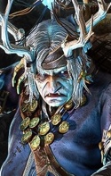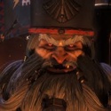 Мрачный гном с заплетённой в множество белых косичек бородой. Частично обращён в камень, почему ходит в специально выкованном экзоскелете, кратно увеличивающий его силу, скорость и выносливость.