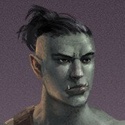 – Коренастый молодой человек, ростом не выше 180 см, а весом – 90 кг. – Кожа преимущественно зелёного оттенка, сухая и грубая, но тело, как назло словно в усмешку над его желанием казаться старше почти полностью лишена волос. На груди его крупный ожог, полученный по стечению обстоятельств уроненного в детстве котелка с печки. Вместе с этим на уровне глаз можно заметить оставленное отцом напоминание после прижатого металлического клейма. Рука его дёрнулась и «красивого» рисунка не вышло, но если спросить Брута – гордый обладатель топора. – Одежду носит простую, без всякой вычурности, с крепкими ботинками – если уж упадёт инструмент из руки, хоть не отрежет палец – и отрицает необходимость использования перчаток, потому что мужчину красят шрамы, а в его случае, мозоли. – От человека Барзокка отличают выходящие за пределы челюсти клыки, заострённые уши да грубоватый взгляд, и если последний можно заметить и среди людей, всё же, что-то совсем неприятное читалось в его глазах, как и у всех членов семейства Брут.