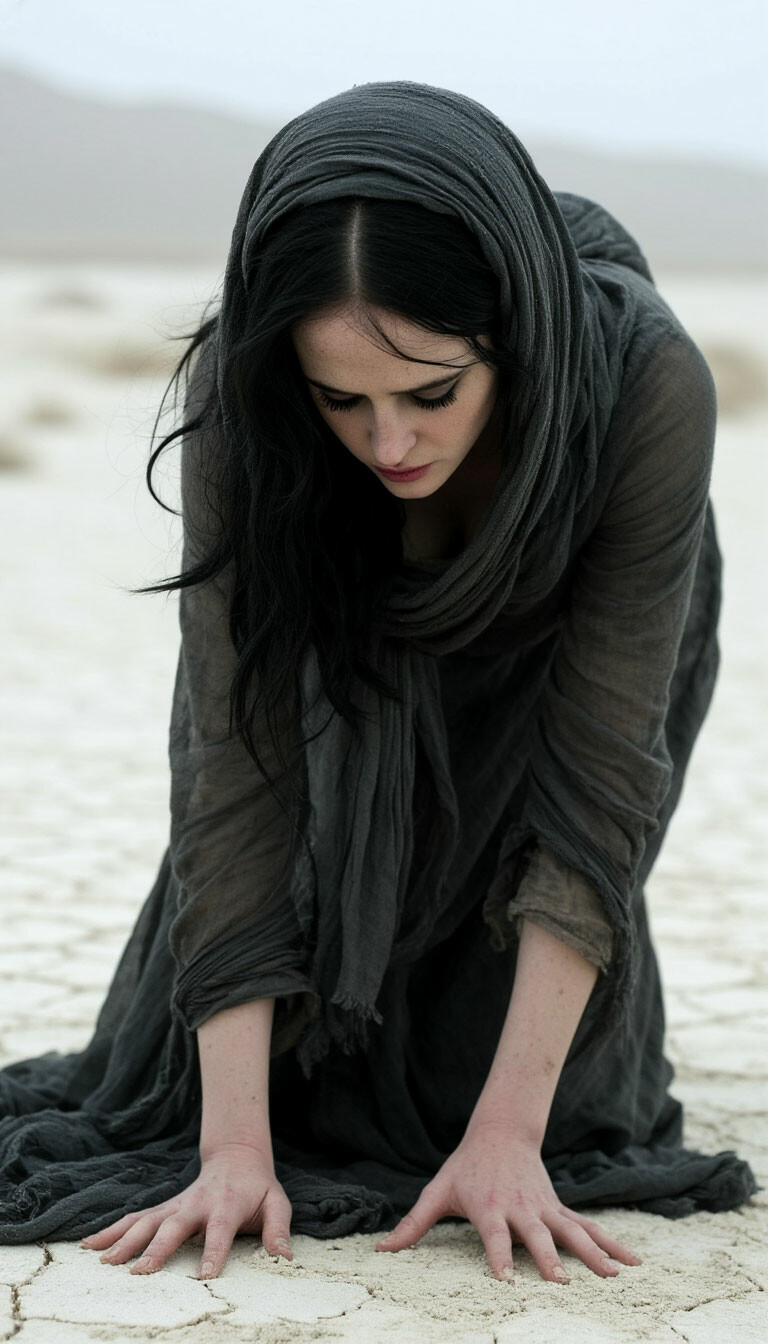 Но вот чёрный газовый платок мягко лёг на волосы, и пришло время выдвигаться на место.