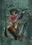 - Заткнись! - прорычал он, услышав мнение голоса о команде: - Ты ни черта о них не знаешь, чтобы такое говорить! Но голос попал в точку. Колпака действительно мало ценили. Жизнь, состоящая только из насмешек и избиений, оставила яркий отпечаток на душе юного чародея. За талант к магии его не просто не любили - его ненавидели. Особенно после инцидента с задирой и изгнанием из приюта. Поэтому тот случай с шуткой Гробеля и измазанным в саже лицом так сильно его задела. История же о Готфриде его удивила. В его лице он был безупречным учёным, изучающим то, к чему другие даже бояться прикоснуться. Недостижимый идеал смелости. А оказалось, что он почти такой же, как и чародей. Он и подумать не мог, что между ними так много общего. Колпак стремился доказать, что он не просто силён, что он силён как никто другой: силён как герои из легенд. Если рассказ о Готфриде правда, то парень не так уж далёк от пути, по которому шёл его кумир. Если так получил свою силу герой из легенд, то так же её получит и он. В голове неожиданно всплыло воспоминание с наставником из прошлого, которого Колпак призирал всей душой. Тот тоже заманивал парня сладкими речами о том, какой невероятный Колпак чародей, о том, что магия сама готова подчиняться его желаниям. Закончилось это всё отвратительно. В этот раз может закончиться так же, если чародей не будет настороже. Его посетила решимость пройти тот же путь, что и Серая Шляпа, вплоть до предательства своего "патрона". - Ладно. Сделаем то, что ты просишь, - твердо решил он: - Но учти, что я не твоя прислуга и забесплатно делать вещи не стану! Колпак убрал кольцо в карман и обернулся на кладбище. В этот момент можно было передумать и вернуться... Частичка внутри хотела бы вернуться, но сделано уже слишком много, чтобы отступать. Если чародей и вернётся, то гораздо сильнее, чем он есть сейчас. - Ждите меня... Рассекатель! - парень запрыгнул на метлу и полетел дальше, более не оборачиваясь.