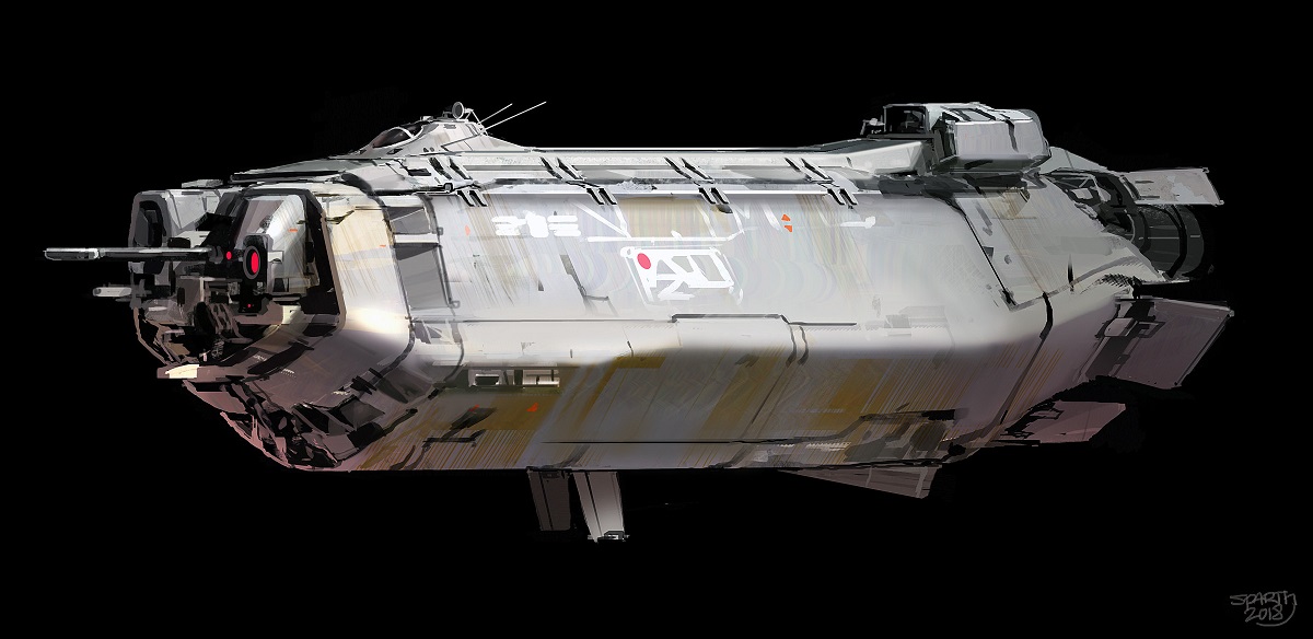 Кальмар (изображение в прикрепленном файле) Древний корпус этого гражданского корабля, что размерами лишь немного превосходил истребители, имел внушительный внутренний объём за счет бочкообразной формы на манер подводных лодок. В эпоху первичной экспансии эти многоцелевые суда служили домом для исследователей, торговцев и дальнобойщиков. Гибкость модульной сборки позволяла компоновать судно под конкретные нужды. Устаревший ядерный реактор, хоть и требовал бесперебойного охлаждения, но не знал сносу. Только топливо подбрасывай раз в 50 лет. Всеядные двигатели эффективнее всего разгоняли водород, но при необходимости могли работать и на воде и любом другом легко испаряемом топливе. Так как судно хорошо себя зарекомендовало и было выпущено в немалых количествах, то попадались и нелегальные модификации с вооружением и военными системами. Но в любом случае, на текущий момент все оставшиеся на ходу Кальмары дышали на ладан, так как последний из них сошел со стапелей более 50 лет назад. В системе Сатурна Кальмары гражданских версий не были редкостью. Вооруженных тоже видели пару раз при налетах каперов. Но, так как корабль не мог похвастаться ни толстой бронёй ни выдающимися ходовыми качествами, то в бой он вступал редко. Конкретно тот экземпляр, что носил имя "Скрытный", отличался от всего виденного ранее свежей тёмно-серой краской и множеством систем РЭБ. Так же имел массив сенсоров военного образца и мощную лазерную батарею в нелепо торчащей башне явно инородного происхождения. Класс: Корвет поддержки Модель: Кальмар (Kalmaro) dST/HP : 50 Hnd/SR: -1/5 HT: 13 Move: 2G/2.25 mps LWt.: 300 Load: 0.6 SM: +7 Occ: 6ASV dDR: 7/7/7 Front Hull [1] Metallic Laminate Armor (dDR 7) [2] Tactical Array (comm/sensor 7) [3] Major Battery (Turret mount 100 MJ infrared LASER). -1 power point (1 workspace) [4-5] Defensive ECM [6] Habitat (1 cabine and 1 bunkroom with extended life support). [core] Control Room (C5 computer, comm/sensor 5, and 3 control stations) Central Hull [1] Metallic Laminate Armor (dDR 7) [2-6] Fuel Tanks (hydrogen fuel with 0,45 mps delta-V each). [core] Fission REACTOR (one Power Points). Exposed Radiators! Rear Hull [1] Metallic Laminate Armor (dDR 7) [2] Engine Room (1 workspace) [3-6] Nuclear Thermal Rocket 0,5G
