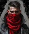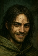 Нужно пожалуй описать Довлата, его фигуру выделяющуюся в опустившихся грозных сумерках. Росту в нем было примерно столько же сколько и в черноволосом разбойнике в зеленых с коричневым одеждах. Но по комплекции он был не в пример шире в плечах, хотя и сравнялся в остальных пропорциях теперь сменив некогда богатырское телосложение на высохший и исхудалый вид щепки. Лицо, а вернее та часть что не была прикрыта алым и порядком драным шарфом была бледная и изрытая оспинами. Короткая стрижка скрывала не первую свежесть волос, а легкая проседь на висках то ли выдавала возраст, то ли прошлые пережитые приключения. Кстати об этом, не правильно было бы счесть Довлата стариком, но и не стоило его загодя записывать в юнцы. Средний возраст скорее угадывался в его правильных чертах лица. Отдельно стоит упомянуть глаза — они словно горели каким-то внутренним необоримым пламенем иногда сменяясь каким-то юношеским восторгом или насмешливой самоуверенной поволокой. Сложно что-то сказать об скрытой тряпкой корявой улыбке или выражении его подбородка. А потому давайте подробнее остановимся на его узких и тонких пальцах, выдающих артистическую натуру. Вернее выдававших бы, если бы не сбитые в кровь костяшки. Кстати об этом, на лице можно было заметить свежий и не до конца зажитый шрам — след от свары со встречным вчера медведем. А левая нога чуть плохо сгибалась в колене что можно было легко заметить по его походке. Кожаный плащ видавший лучшие годы, потертый на сгибах был у Довлата порядочно лет и прошёл вместе с ним довольно многое. То же можно было сказать и о крепких оббитых стальными пластинами башмаках, тяжёлых даже на вид.