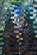 Смуглый, невысокий мужчина среднего телосложения, одет в серую дырявую одежду и плащ, весь пошитый заплатами. Поперек лица проходит шрам, глаза, как и начавшие седеть волосы, имеют оттенок пыли, покрывающей его одежду.