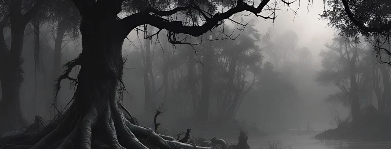 Серые тениНизкое небо сковывали тучи, моросил дождь. Поросшая сорняком дорога давно превратилась в едва различимую тропку, в низинах по обе стороны стояла затянутая ряской вода. Вокруг, куда ни глянь, раскинулись топи — заболоченный лес, сплошь состоявший из ощетинившихся голыми ветвями карликовых деревьев, основания которых уходили в затхлую воду. Дождь усиливался, и теперь выбивал пену и пузыри на поверхности мутных заводей. В кустах у дороги что-то булькало, временами вдалеке жутковато клекотала камышница. Одинокий всадник уже некоторое время как спешился, и теперь шагал по тропе, ведя коня за собой. Подошвы сапог при каждом шаге на пару сантиметров погружались в жидкую грязь, а отпечатки следов быстро заполнялись мутной водой. Морвен хорошо понимал, что если что-то напугает коня и тот шарахнется в сторону, то всадник в седле в считанные секунды может оказаться в трясине — заводи вокруг не выглядели глубокими, но он уже знал не понаслышке, насколько коварными бывают эти места. Не в первый раз за последние дни, Морвен задумался о том, как его вообще угораздило оказаться здесь. Ничейные земли казались настоящей находкой для человека его интересов — почти все древние руины в землях Лирии и империи уже облазили десятки более расторопных исследователей, в то время как тут, на болотах, всё буквально сочилось мистической силой. Кроме того, несколько недель назад авалонцы перешли границу и вторглись в Лирию. Королевство погрузилось в пучину ожесточённой войны, которую — Морвен не сомневался — Лирия проиграет, и ему совсем не улыбалось закончить жизнь на одной из виселиц, сколоченных имперцами вдоль королевского тракта. Местные болота и правда хранили множество тайн, но эти тайны, тщательно оберегаемые первобытной природой, были разнесены друг от друга на многие километры. Здесь можно было путешествовать неделями напролёт, не встретив ни единой живой души, которая могла бы указать направление. Старая карта Морвена, купленная у торговца в приграничной таверне, оказалась почти ни на что не годной — ни один уважающий себя картограф так и не озаботился составлением хоть сколь-нибудь подробного плана Сероземья, и верить можно было разве что информации о поселениях, которые располагались вдоль главных трактов. Никогда прежде Морвен не оказывался настолько отделённым от других людей, от цивилизации — целые дни теперь проходили наедине лишь с собой, со своими мыслями, а побеседовать при большом желании можно было, разве что, с лошадью. Морвен остановился и мрачно огляделся по сторонам. С надеждой коснулся птички Лирики на груди — миниатюрной серебряной инсигнии, одного из немногих настоящих артефактов, которыми обладал — но та не откликнулась. Морвен знал, что если он не сбился с пути, если его расчёты были верны — и, самое главное, верна наводка старейшины — то он уже должен был добраться до места. Старик называл ориентиром расколотое надвое молнией дерево, что в одиночестве стояло на вершине холма — дескать, издали видать, мимо не пройдёшь, не пропустишь. Морвен же видел вокруг себя только чахлый болотный лес, и торчащие из затхлой воды коряги. Квакали жабы. Дело шло к вечеру — странник понимал, что через, самое большее, два часа на болота упадут сумерки. Возможно, пора было задуматься о ночлеге.