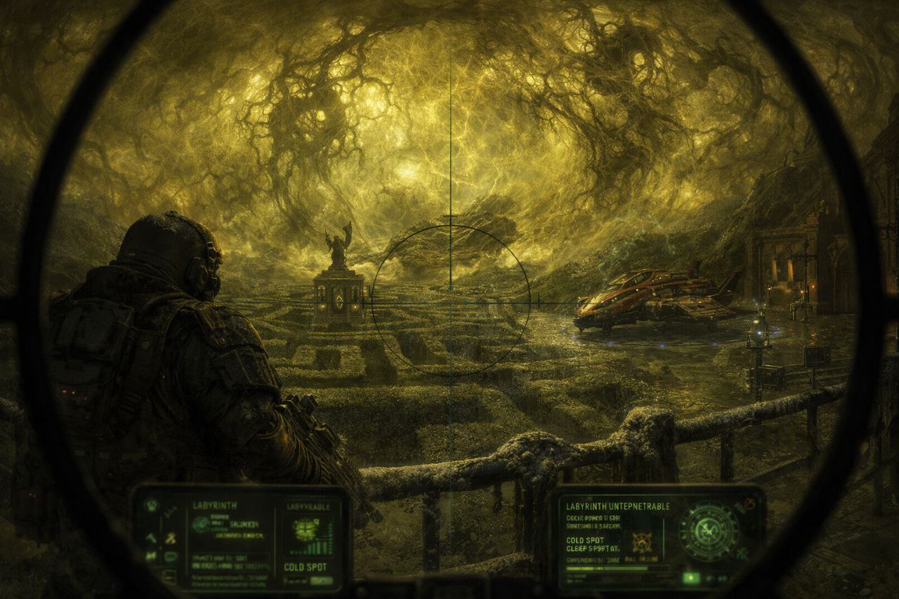 Сразу всё: тепловые пятна, биомасса, энергетические всплески, хаотичные сигнатуры. Экраны захлебнулись потоками информации, предупреждения накладывались друг на друга, маркеры множились, пока система не начала выдавать ошибки позиционирования.