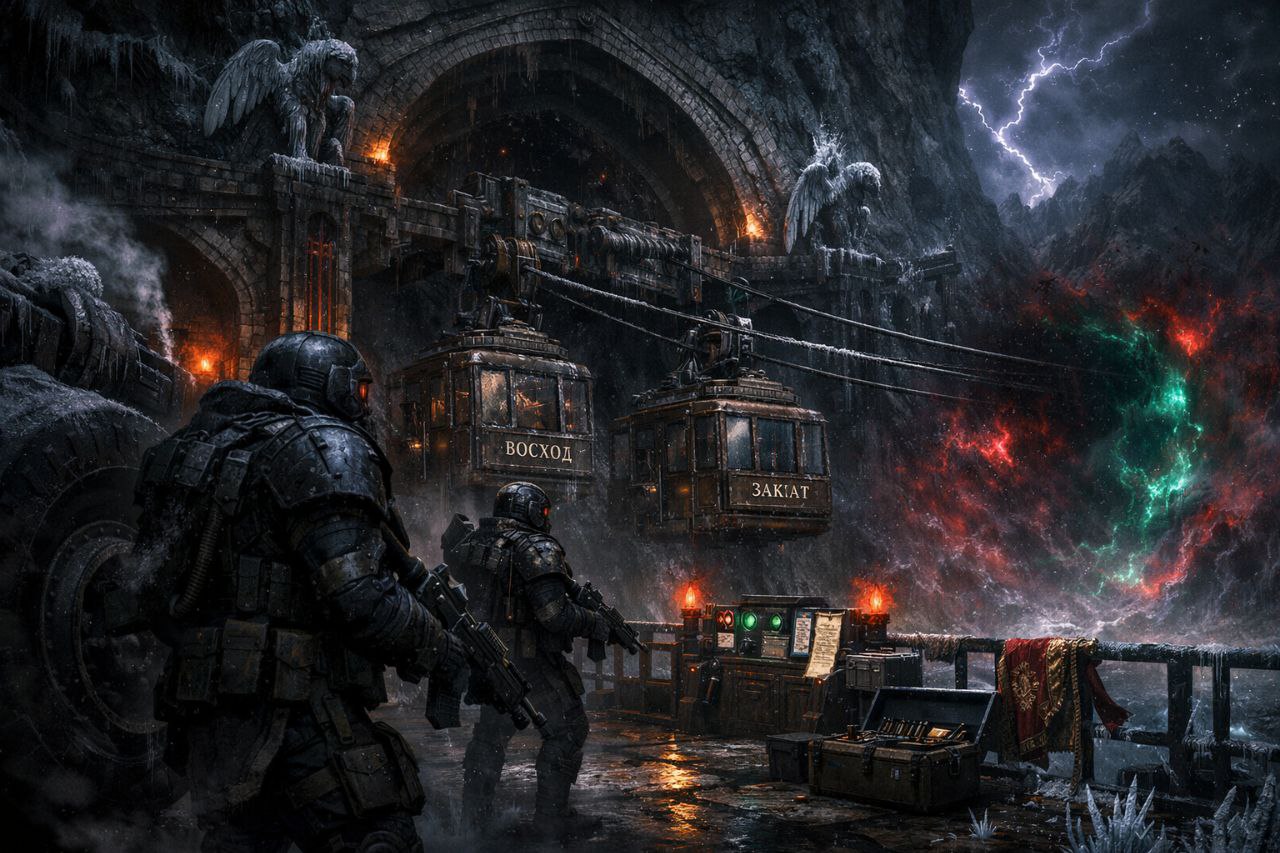 Геометрия живых изгородей растворялась во мраке, когда Коготь-02 вышел на открытую площадку. Посадочная зона раскинулась перед ними широкой каменной террасой, вырезанной в уступе скалы. Ограждения из чёрного металла покрылись инеем, посадочные огни продолжали гореть — ровные жёлтые полосы на промёрзшем камне, как будто кто-то всё ещё ждал прибытия.
