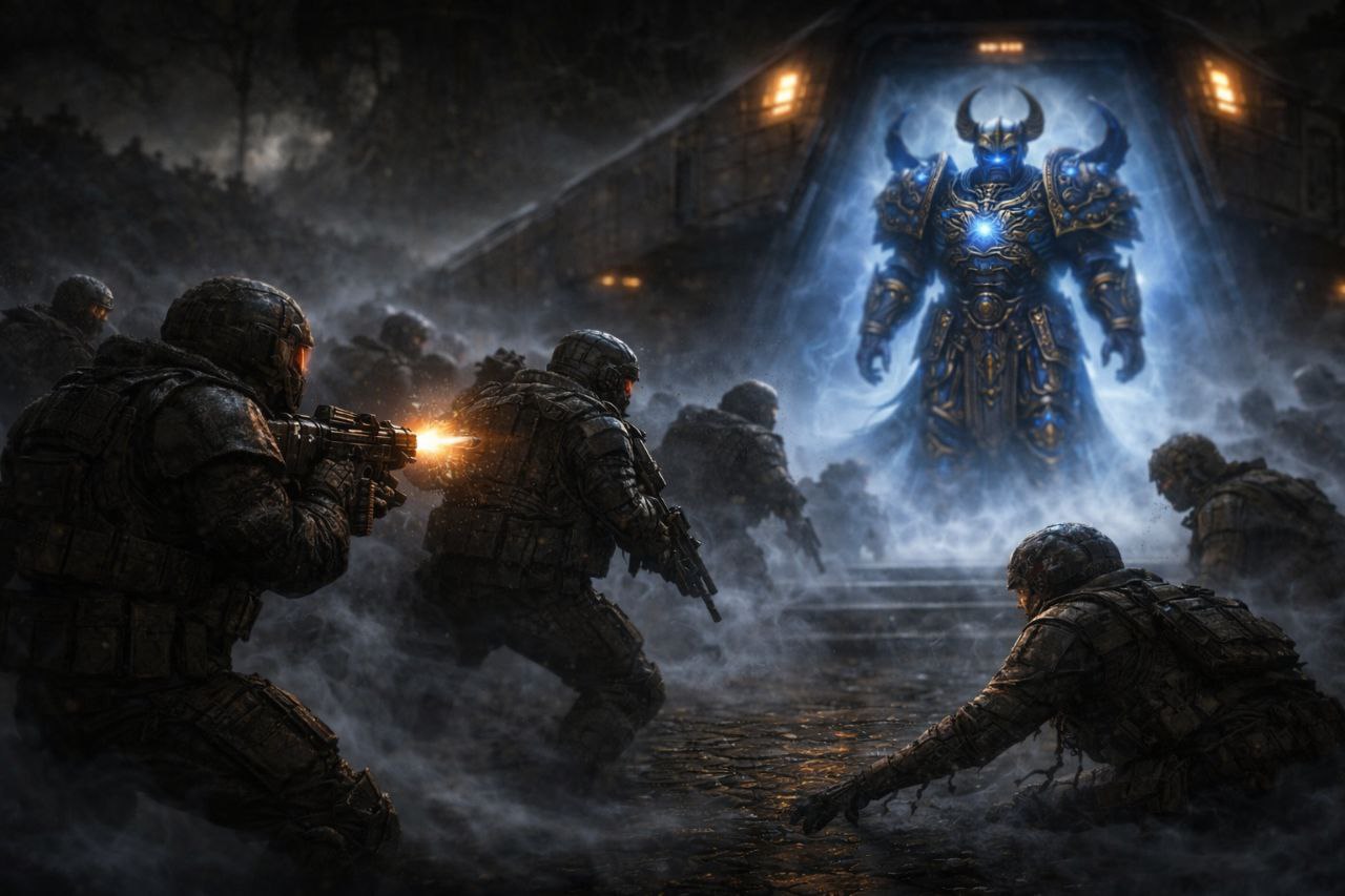 Сайлас получил удар в плечо — не клинком и не когтями, а чем-то холодным и плотным, словно сама масса воздуха врезалась в него. Он пошатнулся, но устоял и продолжил стрелять, стиснув зубы.
