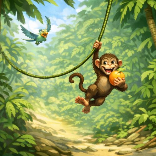 Однако, возвращаясь к потребностям. Не иначе, как по зову судьбы, внимание кладоискателей привлекла шустрая обезьянка. Да непростая, а… с апельсином в лапе! Дело теперь за малым: догнать зверька, отобрать фрукт и преподнести капитану.