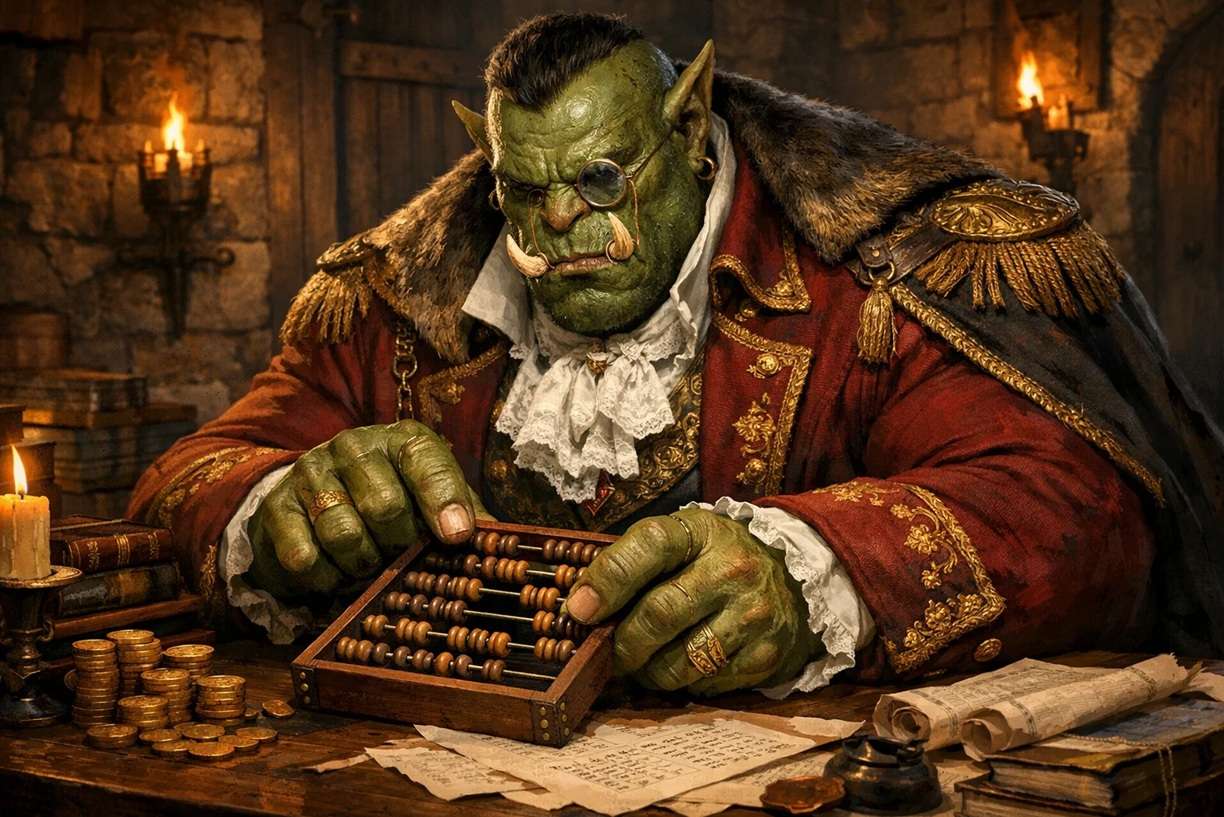 Попытки найти уголь предпринимали многие. Кто-то ковырял склон, кто-то стучал по камням с умным видом, кто-то просто смотрел на землю и надеялся, что она сама сознается. Итог у всех был одинаковый: грязные руки, ноль угля и лёгкое разочарование в геологии как таковой. Кракх же действовал иначе. Со второй попытки — потому что первая была, разумеется, разведывательной и стратегической — орк всё-таки нашёл его. Чёрный, многообещающий уголь. Кракх замер, вдохнул и торжественно объявил: — Моя чувствует. Здесь бизнес. На месте находки он немедленно основал акционерную компанию «Чёрный Камень & Кракх. Копать — Богатеть — Греться», офис которой пока что представлял собой лаз под землю, пару воткнутых жёрдочек, гордо сигнализирующих: тут уголь, — и особенно уважаемый кусок породы. Этот камень Кракх немедленно назначил креслом генерального директора, уселся на него и выглядел при этом крайне убедительно. Вскоре к «офису» подтянулись зеваки. Маленький полурослик протянул Кракху кружку пива. Орк с важным видом принял её, чуть приподнял, словно оценивая цвет, плотность и, возможно, ликвидность напитка, после чего торжественно кивнул: — За успехи новой акционерной компании. На этом анализ завершился. Кракх осушил кружку с видом руководителя, который только что одобрил крайне перспективное начинание и лично подтвердил его жизнеспособность. Под влиянием хмеля и корпоративного духа Кракх развернул бурную деятельность. Из бесполезных обломков породы он соорудил акции компании и начал щедро «распределять доли» между жителями поселения, важно объясняя, что это участие, инвестиция и вообще будущее. Когда эльф вызвался добывать уголь, Кракх временно одолжил ему кирку. Впрочем, дальше входа в подземелье эльф сразу не прошёл. Орк поднял палец и, приняв максимально серьёзный вид, выдал нечто среднее между орочьей техникой безопасности и мотивационной речью: — Камень падать — не стоять. Кирка махать — не махать себя. Если слышать треск — бежать. Если не слышать — тоже бежать. А если работать хорошо, компания помнить. Очень помнить. После этого Кракх удовлетворённо кивнул, пропустил эльфа внутрь и снова уселся на своё директорское кресло, наблюдая за «производством» с видом того, кто твёрдо знает: дело пошло. После Кракх, не сходя с импровизированного «кресла генерального директора», пытался освоить заклинание Удачи. Он разложил счёты, сдвигал костяшки туда-сюда, хмурился, бурчал себе под нос непонятные формулы и время от времени делал вид, что вот сейчас — точно понял принцип. Со стороны это больше напоминало попытку уговорить реальность согласиться на выгодные условия. Реальность, впрочем, на переговоры не пошла. Заклинание не сработало. Однако Кракх лишь важно кивнул, словно речь шла о временной просадке рынка, собрал счёты и решил, что вопрос требует повторного анализа. Настойчивый орк явно не собирался отказываться от идеи — удача рано или поздно обязана будет пойти на контакт. Нужно только пересмотреть условия.